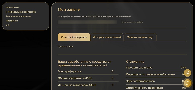 Доход начисляется в RUB или USD. Чтобы выводить деньги, необходимо привлечь минимум 5 пользователей, которые проведут хотя бы один успешный обмен на сайте. Выплата происходит в течение суток после подачи соответствующей заявки.