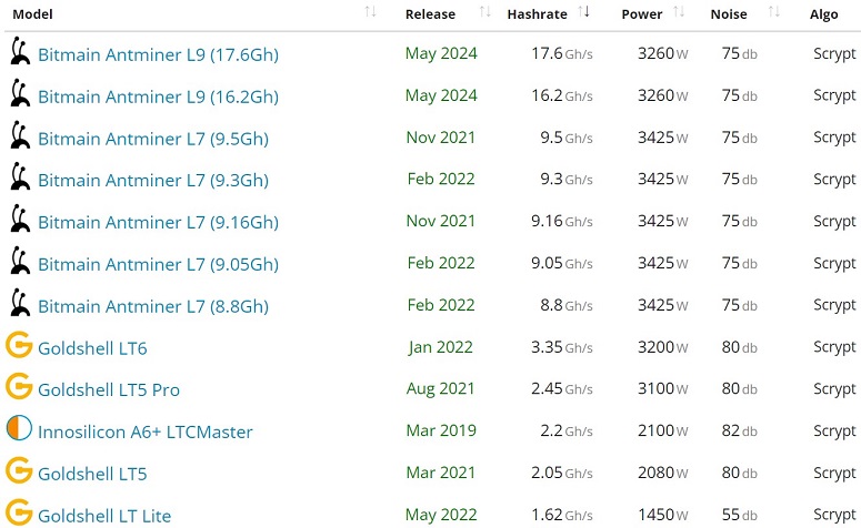 Большинство ASIC-устройств подходит для поиска хешей по конкретным алгоритмам. К примеру, модель Antminer L3 майнит криптовалюты, которые используют Scrypt. Среди них многим участникам рынка известны Litecoin и Dogecoin.