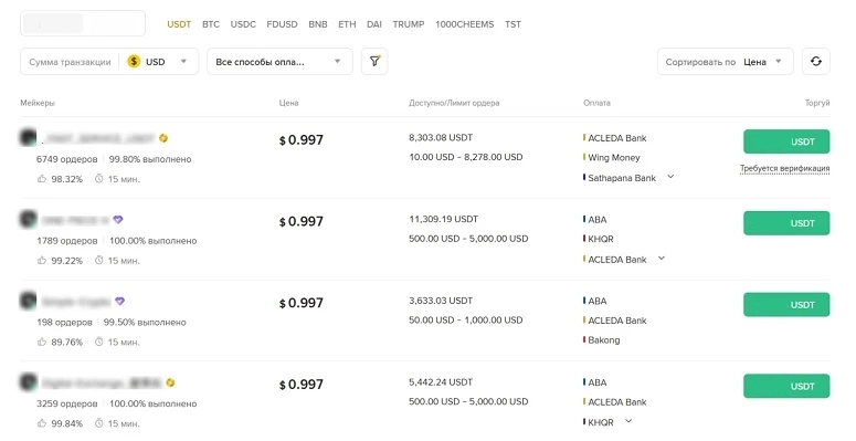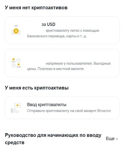 На Бинанс не поддерживаются фиатные депозиты. Но пользователи могут купить криптовалюту за USD с помощью партнерских сервисов и на P2P-бирже.