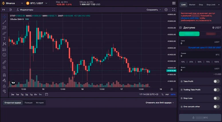 Торговый терминал имеет простой и удобный интерфейс. Пользователи могут переключаться между биржами одним нажатием мыши. Кроме того, платформа предоставляет возможность индивидуальной настройки графиков в соответствии с личными предпочтениями. Можно выбрать таймфреймы, тип отображения цены (японские свечи, бары, столбцы и другие), варианты оформления.