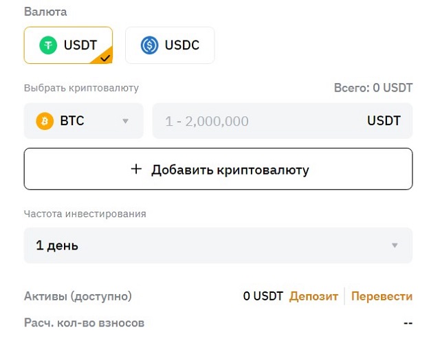 - Цифровая валюта покупки — USDT или USDC.