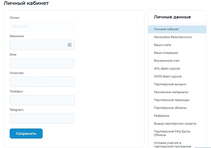 В отличие от других криптообменников, Buhta Obmena не создает учетную запись клиенту при оформлении заявки. Аккаунт генерируется при поступлении оплаты на счет сервиса и позволяет отслеживать ход операции в истории сделок. Авторизованные пользователи также могут участвовать в партнерской программе и получать скидки на обменные операции.