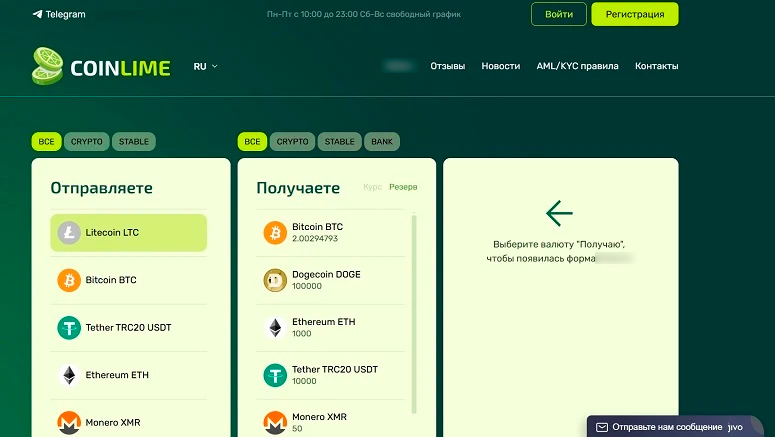 Обменник Coin Lime действительно является лучшим обменником по криптовалюте. Курс фиксированный и всегда выше конкурентов, нет скрытых комиссий, надёжный и максимально простой и понятный интерфейс. Обязательно ещё у вас обменяю