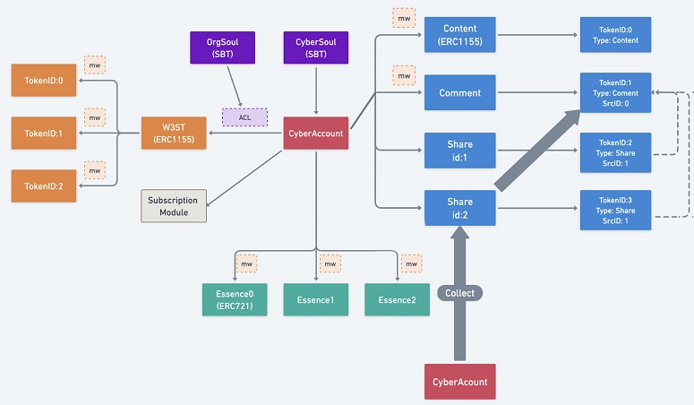 - CyberID. Имя и цифровые данные как идентификаторы личности можно записать в блокчейн. Их чеканят в виде токена ERC-721. Иными словами цифровая идентичность хранится как NFT. Прежде они назывались CyberProfiles, однако после обновления протокола до CyberConnect V2 этот элемент стал CyberID.