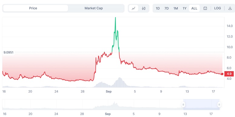 Проект показывает потенциал для роста цены нативной криптовалюты. Однако в сентябре 2023 точку входа для инвестиций нужно выбирать осмотрительно. Это связано с тем, что первый импульс после недавнего листинга уже иссяк, а торговых данных для технического анализа пока мало. С момента появления в биржевых списках прошло всего 1,5 месяца. Однако этой информации достаточно, чтобы использовать актив в качестве трейдинг-инструмента.
