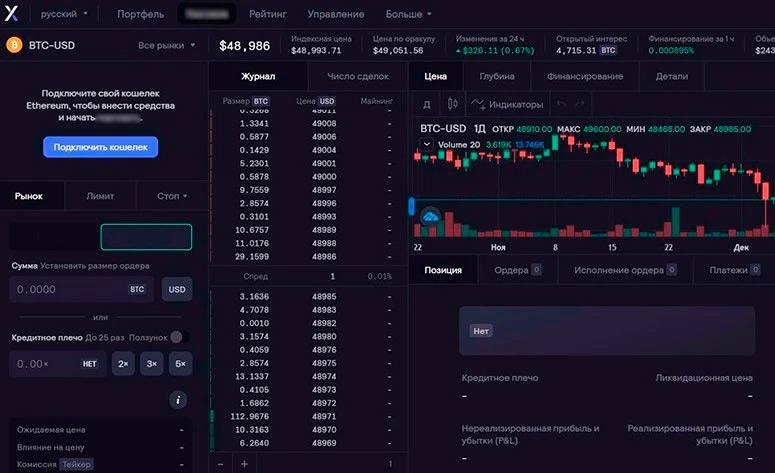 dYdX — это открытая торговая платформа на блокчейне с передовыми финансовыми продуктами. В основу легла популярная сеть Ethereum, поверх которой было внедрено решение 2 уровня (Level 2) от StarkWare. Биржа децентрализованная (DEX), все сделки проводятся напрямую между пользователями. По каждому типу торгов предусмотрен отдельный счет. Для реализации соглашений применяются смарт-контракты. При этом средства всегда хранятся у самого трейдера.