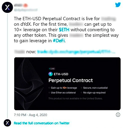 Платформа DYDX в какой-то мере действительно уникальна, поскольку первой дала возможность пользователям работать с бессрочными контрактами. До этого на централизованных платформах подобная возможность была давно. Но именно DYDX начала давать возможность работать с подобным инструментом именно в сегменте DEX.