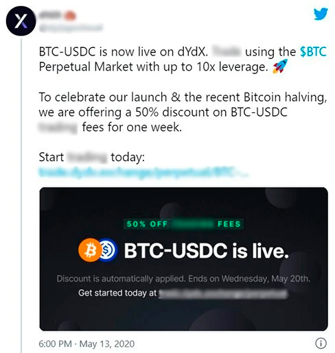 - В мае 2020 г. платформа предложила торговлю бессрочными контрактами BTC c расчетами в USDC. Кредитное плечо — х10. Впервые этот инструмент стал доступен в децентрализованном секторе. В данный период платформа заняла 3 место среди всех DEX. Объем торгов с начала 2020 г. вырос до $2 млрд. TVL (заблокированные средства в смарт-контрактах) — $25,6 млн.