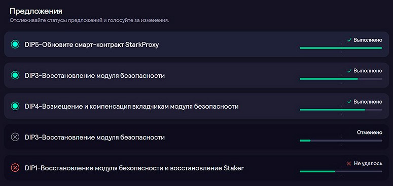 Вторая важная функция токенов — выдвигать, поддерживать или голосовать против предложений по изменениям протокола. Чтобы любая модификация была принята, она должна набрать определенное количество «за». Минимальный порог зависит от типа предложения. Например, критические голосования, которые касаются управления, занимают больше времени и требуют значительного перевеса. Если же предложение связано только с параметрами протокола, то оно будет рассмотрено быстро. Процесс разбит на такие этапы: