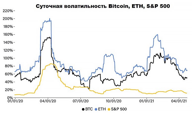 - Волатильность. Большие колебания цены затрудняют использование криптоактивов для заключения долгосрочных коммерческих контрактов и вызывают спекулятивный спрос.