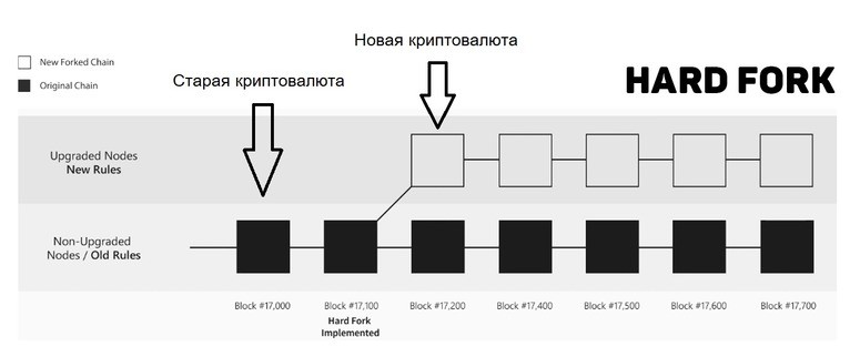 — жесткое разделение блокчейна. Простыми словами это обновление сети с появлением новой криптовалюты. Образовавшийся цифровой актив начинает работать в своей системе.