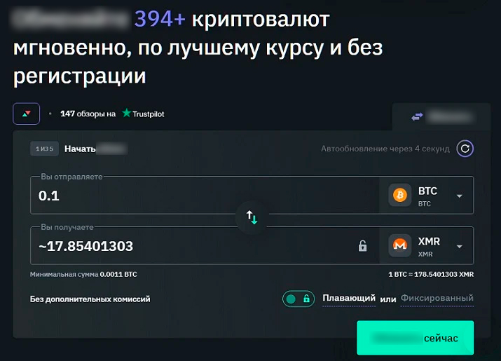 - Приватность операций. Платформа сохраняет конфиденциальность при работе с сервисом. Чтобы обменять криптовалюты, не нужно проходить KYC или регистрировать аккаунт.