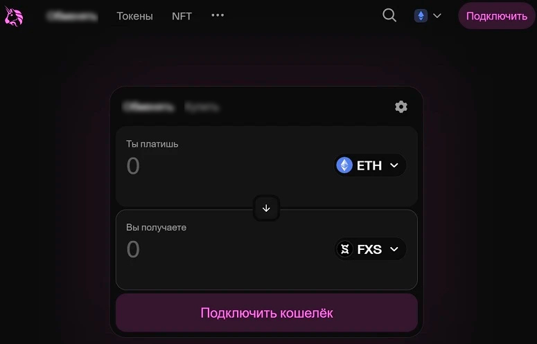 - В строке «Ты платишь» указать USDT или другой актив, в окне «Вы получаете» — криптовалюту FXS.
