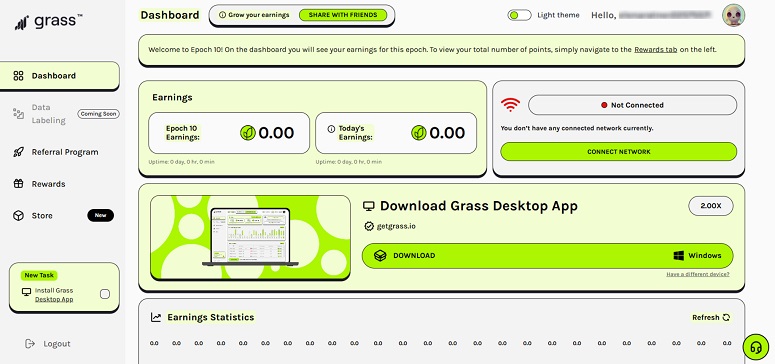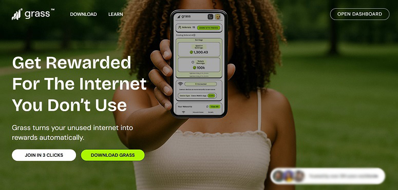 - Пользователи (операторы узлов) получают баллы за предоставление пропускной способности. Их можно обменять на криптовалюту GRASS.