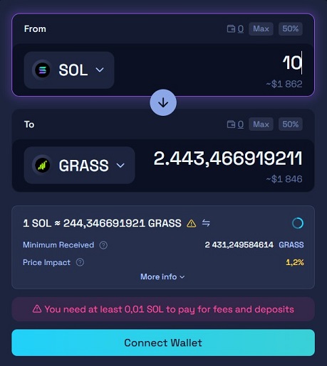 Для хранения актива подойдут системные кошельки Solana, а также мультивалютные сервисы с поддержкой материнской сети. Разработчики Грасс предлагают подключаться к платформе с помощью: