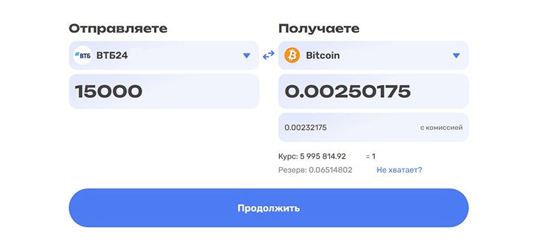 - В следующей строке отобразится сумма к зачислению с учетом комиссии. Ниже будут указаны расчетный курс и доступный резерв.
