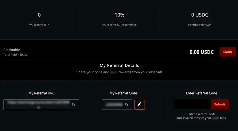 Каждый кошелек, подключенный к платформе Kuma, генерирует уникальные реферальные ссылку и код. Их нужно скопировать на странице Referrals.