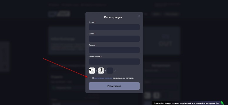 После создания профиля на официальном сайте InOut Exchange пользователь получает личный кабинет и доступ к партнерской программе. Чтобы пройти регистрацию, необходимо выбрать соответствующий пункт в главном меню, заполнить форму и принять пользовательское соглашение. Дополнительные подтверждения не требуются.