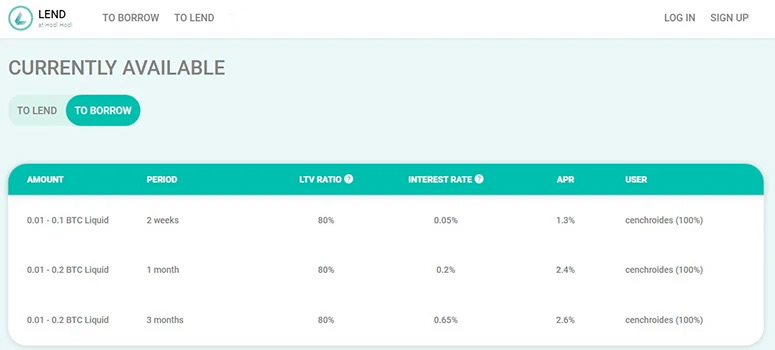 — Принцип работы платформы очень схож с торговой частью. Контракт создается. И платформа генерирует уникальный multisig эскроу-адрес. Далее заемщик вносит биткоины в качестве залога в эскроу прямо из своего кошелька. Затем кредитор переводит заемщику сумму займа согласно контракту. После погашения займа кредитор высвобождает биткоин из эскроу в кошелек заемщика.