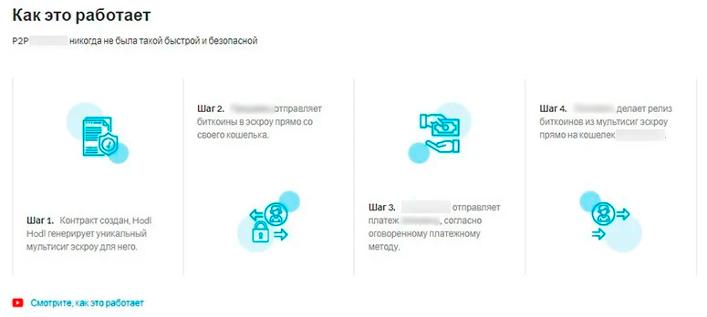 — Основное наше отличное — это некастодильность (отсутствует хранение криптовалюты на платформе, из-за чего исключается риск взлома — прим. ред.). Наша уникальная эскроу-технология позволяет клиентам контролировать свои средства на протяжение всей сделки, а также благодаря 2 из 3 multisig (схема реализации электронной мультиподписи — прим. ред.), никто из участников сделки не перемещает средства единолично.
