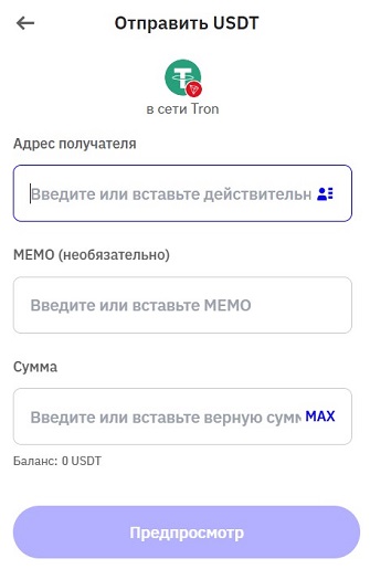Перевод USDT в кошелек