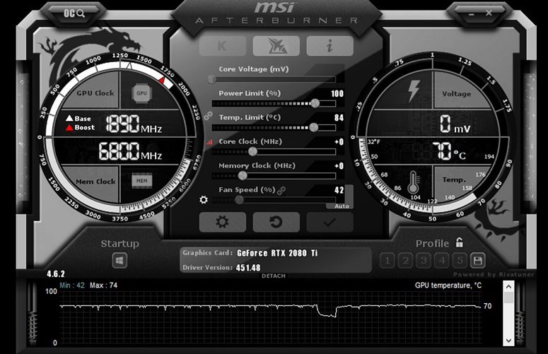 Для проверки параметра нужно запустить тест в программе MSI Afterburner и сравнить полученные значения с эталонными. Данные можно найти в спецификации на сайте разработчика. Инструкция такая: