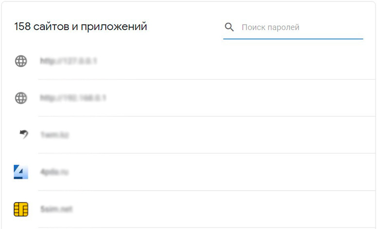 Здесь хранятся регистрационные данные от аккаунтов тех сервисов, которые разрешают автосохранение. Пользователю доступна функция поиска. Чтобы посмотреть пароли, нужно подтвердить владение аккаунтом.