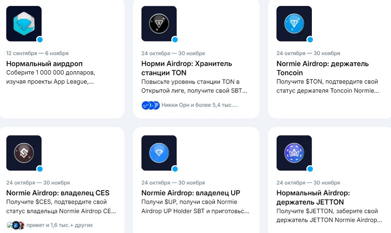 На сайте разработчиков можно выбрать аирдроп-кампанию по интересам и уровню вовлеченности:
