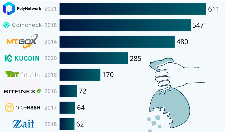 Аналитики подсчитали, что в течение 2020 года было похищено криптовалюты на общую сумму $3,8 млрд. Эти цифры удивительны, так как технологию блокчейн почти невозможно взломать. Основная вина лежит на самих людях, держателях криптокошельков, владельцах аккаунтов на биржах и сотрудниках, работающих там. Не уязвимость кода или низкая степень защиты, а человеческий фактор — вот причина наиболее крупных потерь в мире цифровых коинов.