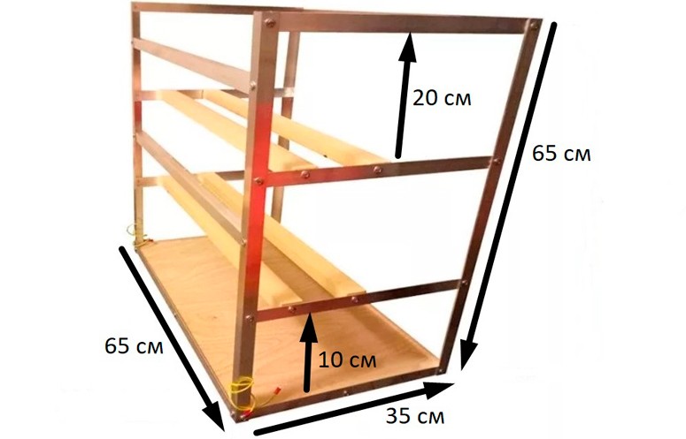 Размер готовой установки будет относительно небольшим. Рекомендуется придерживаться следующих пропорций: