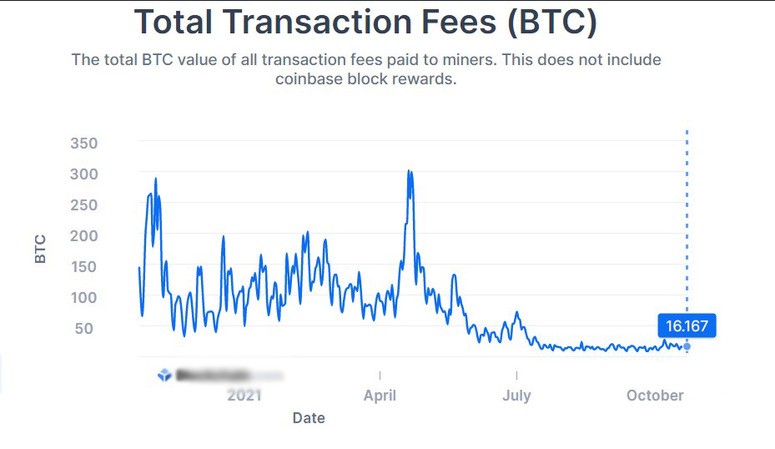 Биткоин-узлы получают вознаграждение за создание блоков и плату за поддержание работоспособности сети в виде комиссий за транзакции. Отчисления за переводы — небольшая часть прибыли узлов. Узлы майнят около 900 монет Bitcoin (примерно $55,1 млн на конец октября 2021 года) в день и зарабатывают от 60 до 100 биткоинов (около $6,13 млн) в качестве вознаграждения за подтверждение транзакций. Плата за поддержание работы сети равна 6,5% доходов майнера, но к 2140 году, когда добудут все BTC, выручка от комиссий увеличится до 100%.