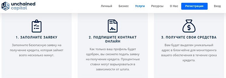 Платформа принимает обеспечение в BTC, ETH, XLM, XRP, USDT и других активах.