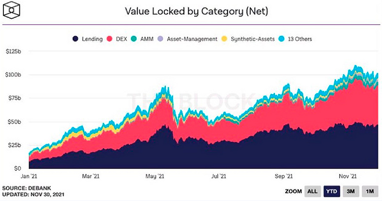 Кредитование под залог цифровой валюты — одна из основных услуг в секторе . В 2021 году рынок децентрализованных финансов вырос почти в 9 раз (с $18,5 млрд до $162 млрд в декабре). Криптозаймы пользуются популярностью. Инвесторы и трейдеры видят в них возможность распоряжаться деньгами, не продавая свои активы. Однако банки пока не доверяют цифровым монетам и не рассматривают их в качестве залога. Причина — сложный правовой статус криптовалют.