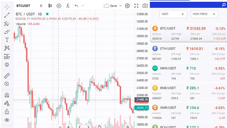 Данная платформа предназначена для торговли (покупки и продажи) криптовалютой и канонизированными активами фондового, сырьевого, товарного, энергетического рынков. На ней всего более 300 инструментов.