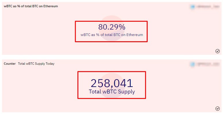 Чтобы рассчитать общую обращаемость BTC на биржах, необходимо понять, сколько биткоинов заблокировано в децентрализованных финансах () с целью выпуска wBTC. Чуть больше 258 тыс. wBTC, это примерно 80% от всех монет Bitcoin на Ethereum.