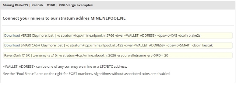 Для начала майнинга на NLPool пользователям не нужно проходить регистрацию. Достаточно получить адреса подключения и настроить оборудование.