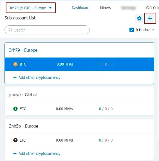 - Создать субаккаунт и выбрать криптовалюту для добычи.