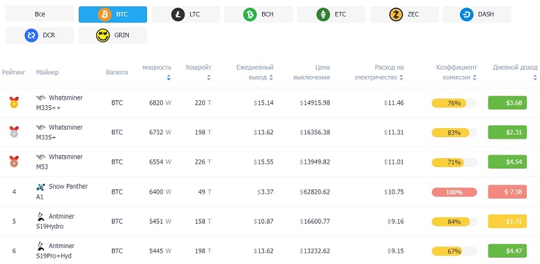 Если в дашборде нажать на наименование актива, снизу появятся рекомендуемые устройства. Также можно ознакомиться с рейтингом, чтобы узнать, какие модели получают больше дохода в день.