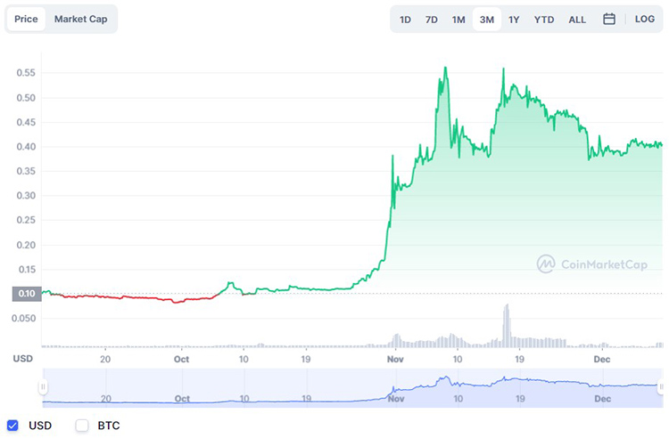 | Максимальная цена | $0,5682 (8 ноября 2022 года) |