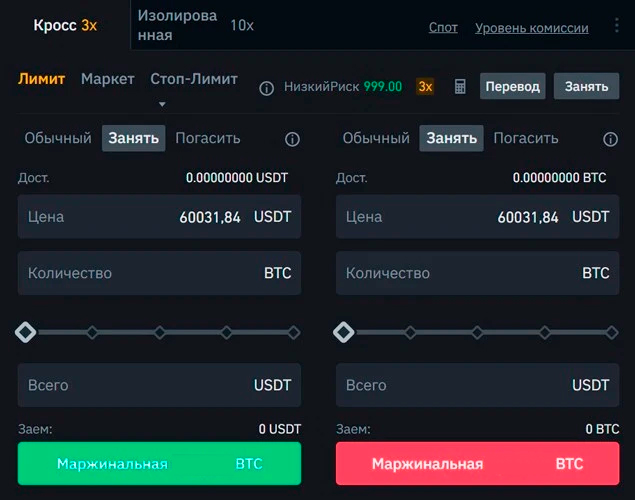 Любой актив можно шортить — играть на понижение. Предположим, что пользователь берет в кредит 1 BTC с плечом 1:3 и продает по курсу $60 000. Для обеспечения предоставляется сумма в $20 000.
