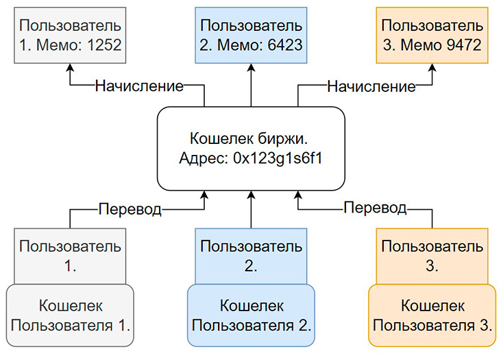 - При обмене альткоинов через биржу. В таких случаях монеты необходимо перевести на торговую площадку. Биржи используют единственный кошелек для всех клиентов (чаще с холодным методом хранения приватных ключей). Поэтому пользователям выдается уникальный идентификатор, который применяется для пополнения счета.