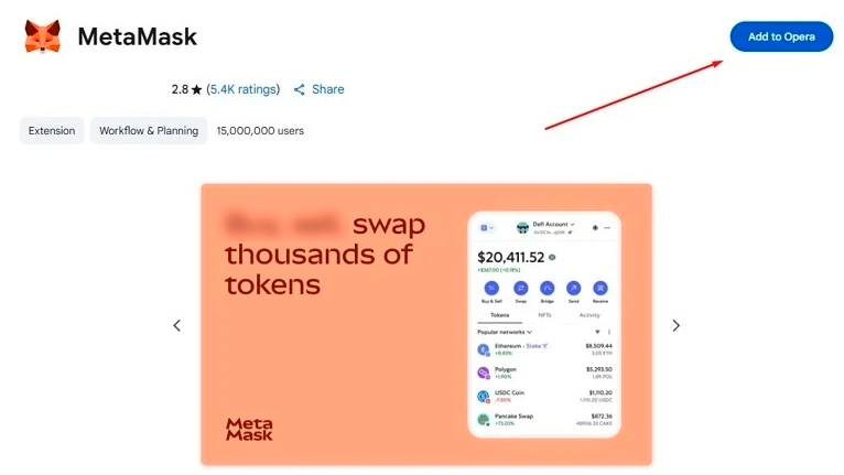 Расширение MetaMask для Opera