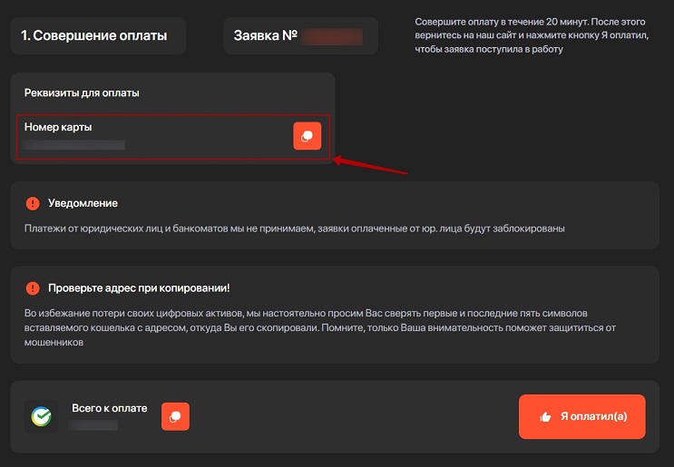 Совершить перевод необходимо в течение 20 минут. Если для оплаты потребовалось больше времени, нужно написать в службу поддержки и предоставить операторам номер заказа. Сотрудники площадки изменят статус заявки.