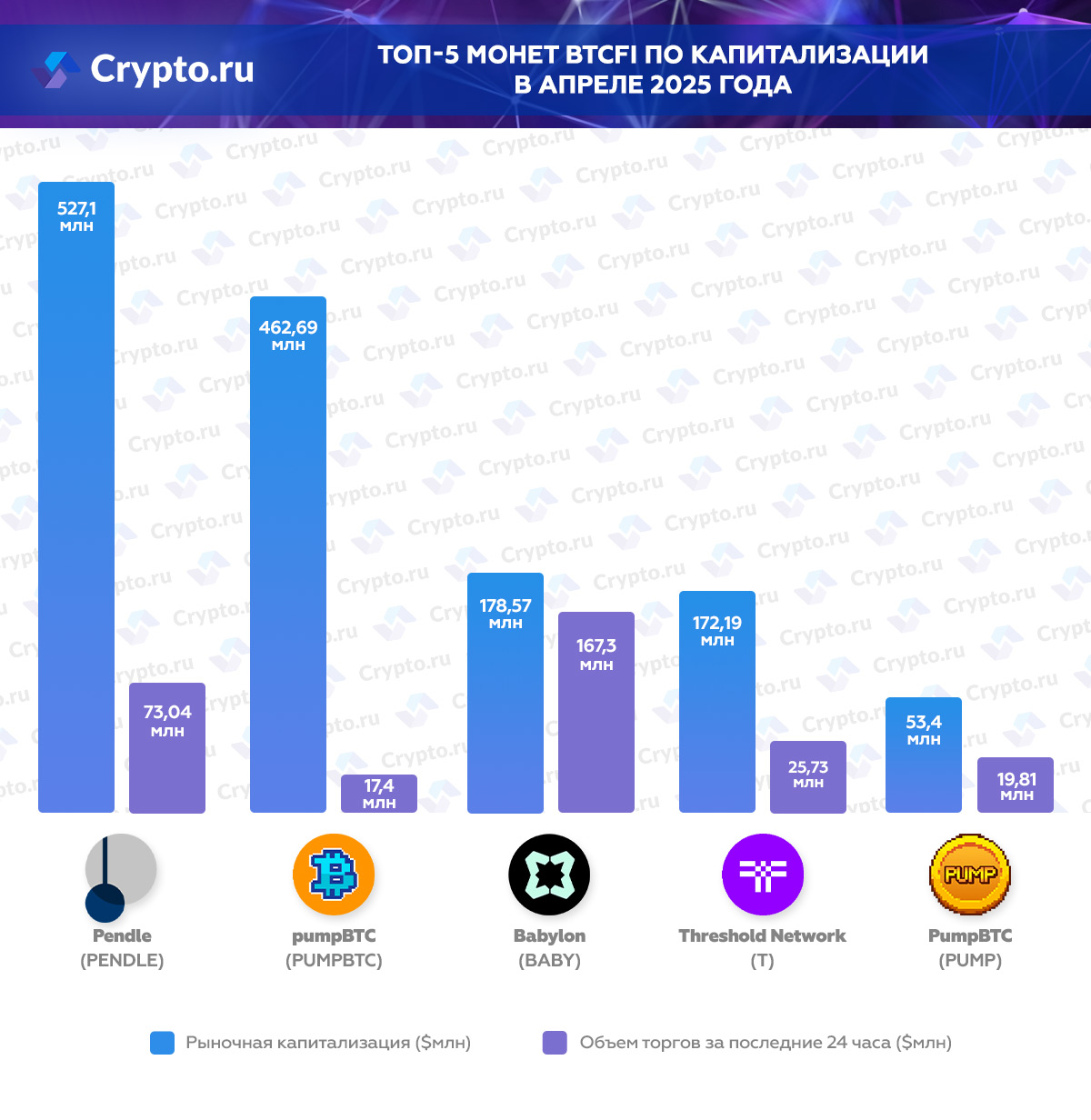 Топ-5 монет BTCfi по капитализации в апреле 2025 года