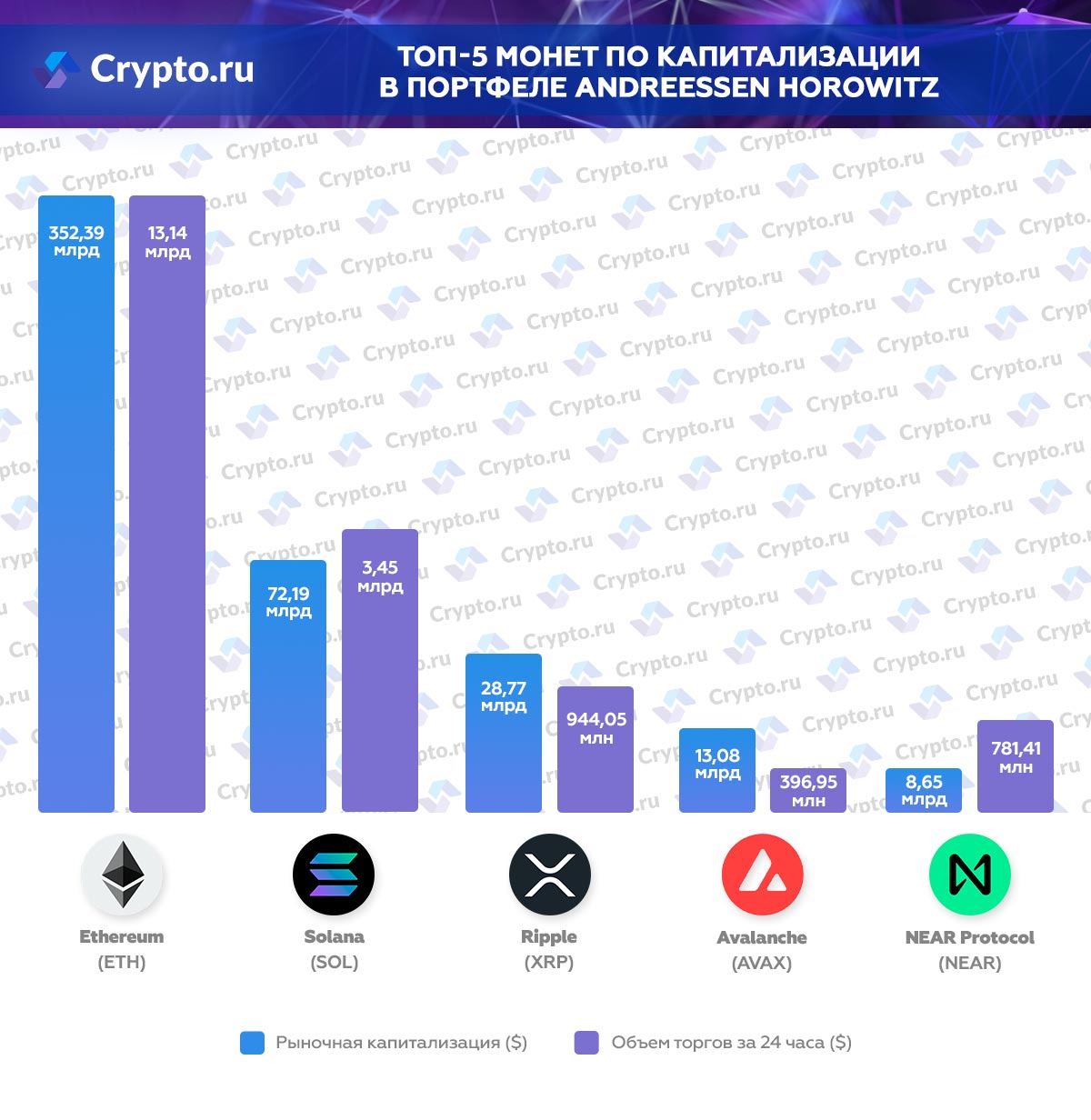 Топ-5 монет по капитализации в портфеле Andreessen Horowitz