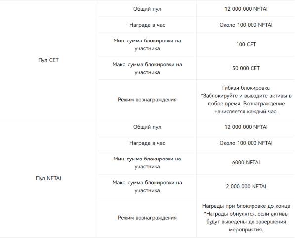 - Ссылка на мероприятие: Заблокируйте CET или NFTAI и разделите 24 000 000 NFTAI.