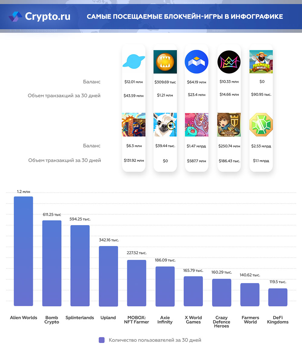 Самые посещаемые блокчейн-игры в инфографике