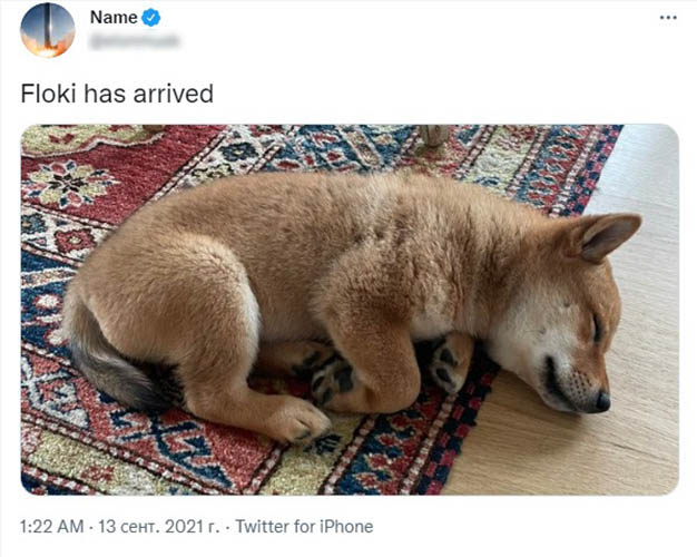 Сообщение Маска не несло в себе никакой аналитики или прогнозов. Предприниматель просто запостил фотографию спящего на ковре щенка породы Сиба-ину (Shiba Inu), которого назвал Флоки (Floki).