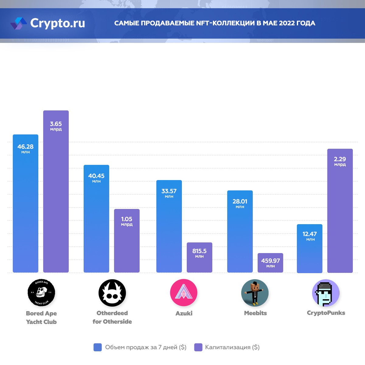 Самые продаваемые NFT-коллекции в мае 2022 года