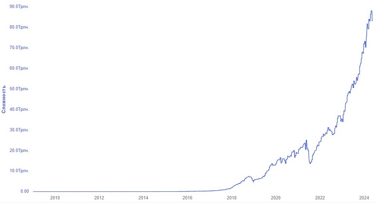 - Сложность сети. Она увеличивается при росте конкуренции для того, чтобы на нахождение блоков в Bitcoin всегда тратилось около 10 минут. Чем выше сложность, тем ниже прибыль.
